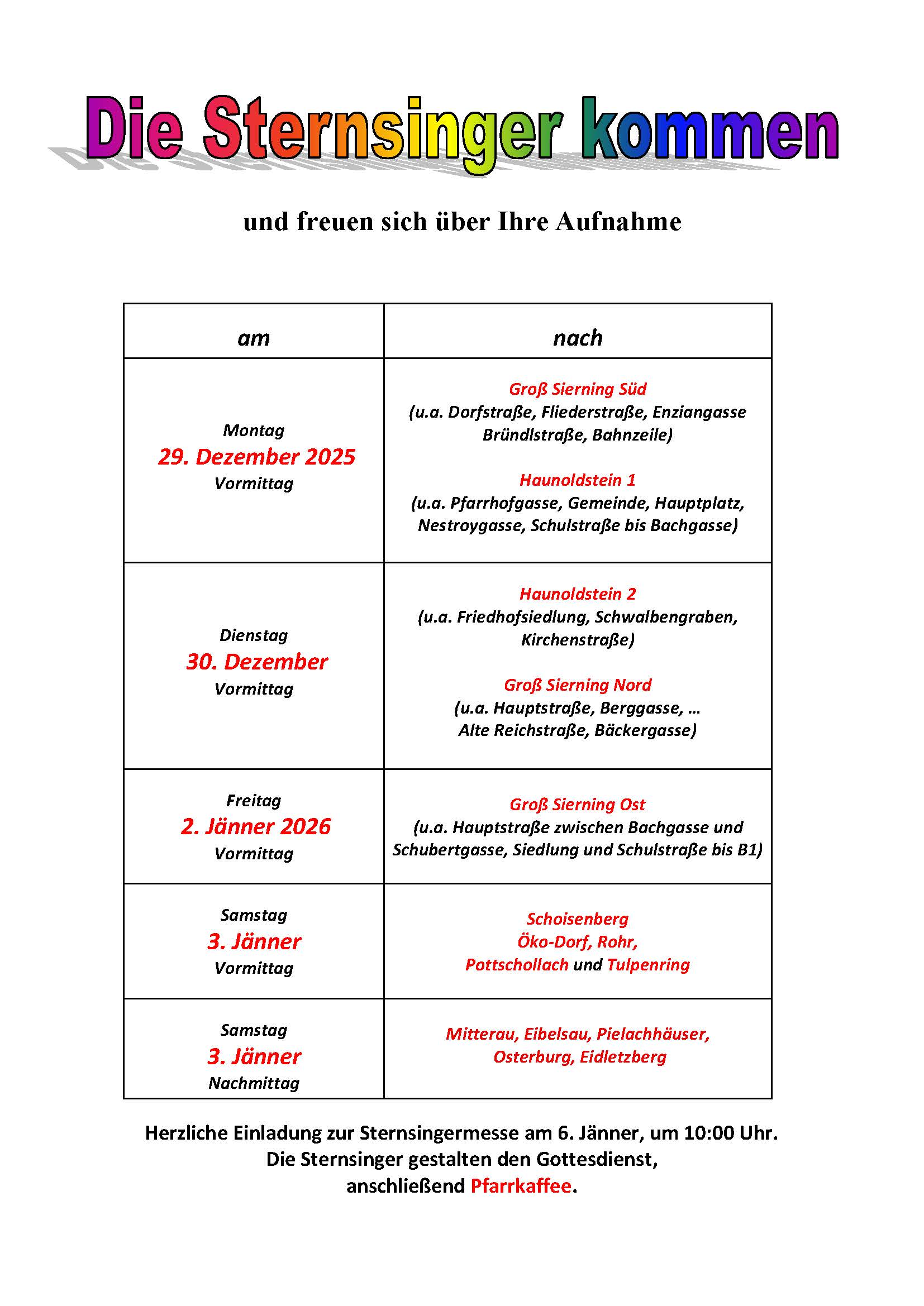 sowie nach Neujahr