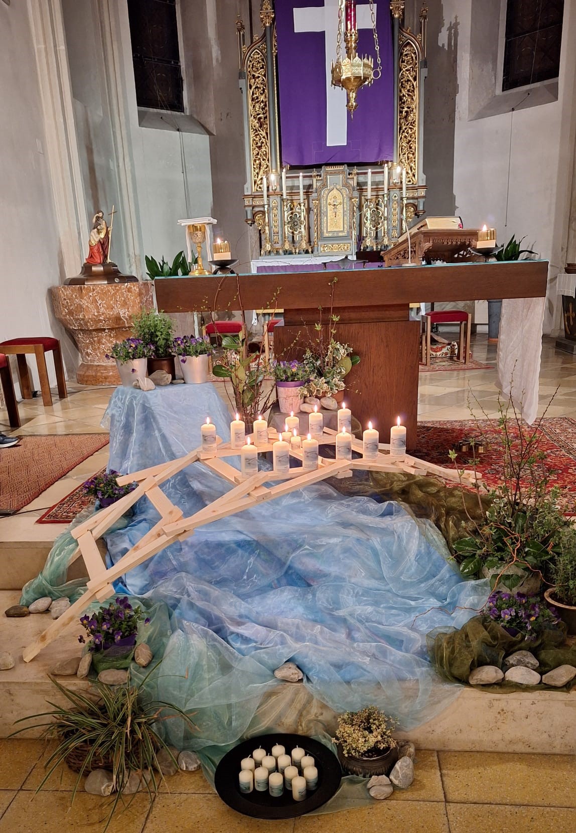 HAFNERBACH - Am 21. März wurde im Rahmen der Vorabendmesse der Gottesdienst für trauernde Angehörige unter dem Motto "Eine Brücke der Liebe und Erinnerung gefeiert". Diese Brücke stellt symbolisch die Verbindung zwischen den Lebenden und den Verstorbenen dar. Die Trauer ist ein Hin- und Hergehen auf dieser Brücke, ein Hinübergehen in ein Land, das man noch nicht kennt, sich nicht vorstellen kann und ein Herübergehen in das Land der Vergangenheit/Erinnerung wo man mit dem lieben Verstorbenen beisammen war.