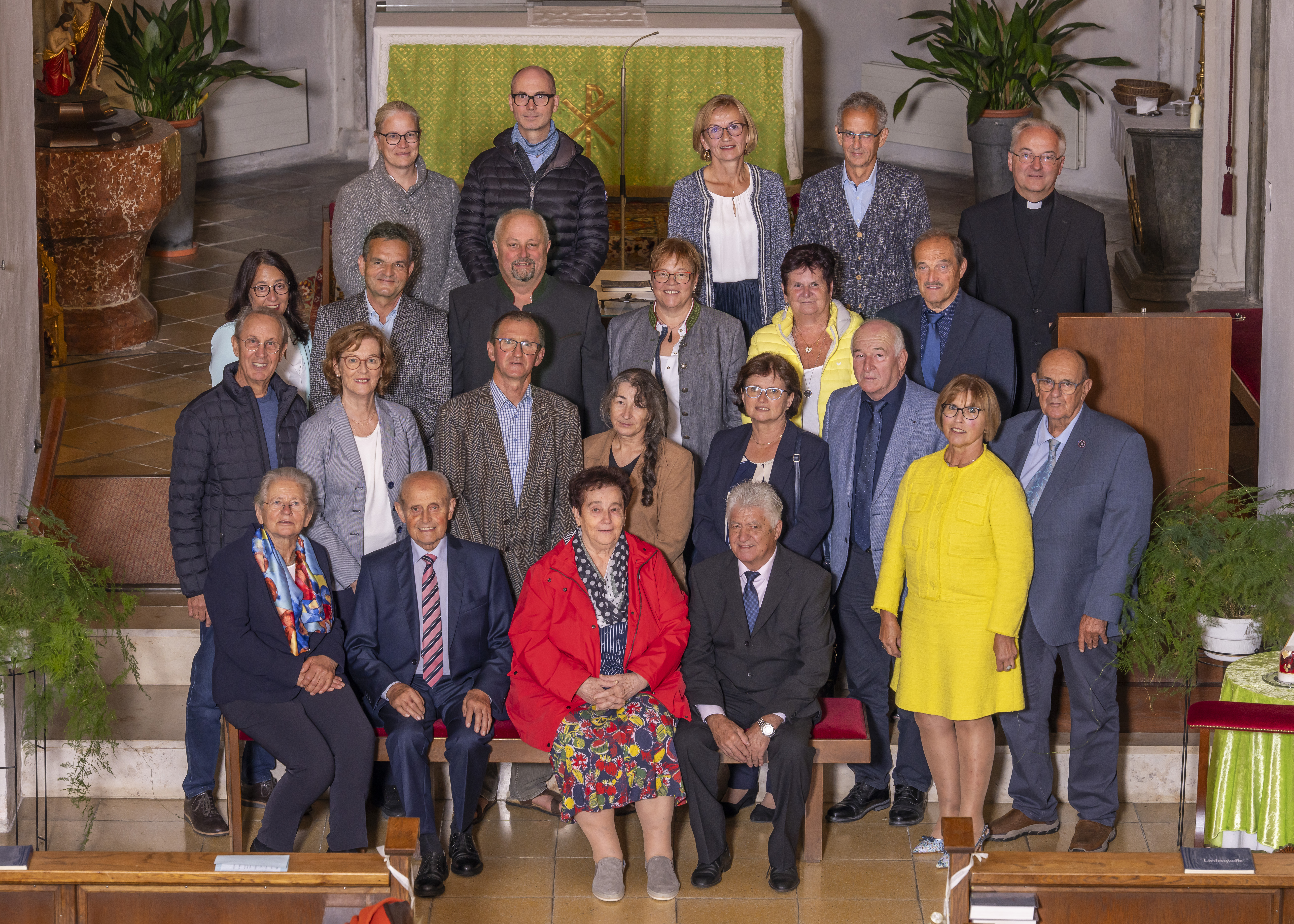 HAFNERBACH - 11 Paare feierten am 27. September ihr Hochzeitsjubiläum. Die Jubelpaarmesse stand unter dem Motto "Unsere Zeit steht in Gottes Händen". Im Anschluss an die Hl. Messe wurde zur Agape in den Pfarrsaal eingeladen und jedes Jubelpaar bekommt als Erinnerung ein Gruppenfoto. Danke und vergelt`s Gott für die Gestaltung der Liturgie und Musik, für all die Vorbereitungen wie Gestaltung der Einladungen, Organisation der Agape, das festliche Schmücken der Tische im Pfarrsaal, den Mehlspeis-und Tischschmuckspenden und der Brotspende. Danke den Frauen und Männern, die für die Bewirtung der Jubelpaare sorgten, die die belegten Brote liebevoll richteten und die am Ende alles wieder versorten. Der eine wäre ohne dem anderen nichts - denn erst all diese helfenden Hände machen ein Fest zu etwas Besonderem.
