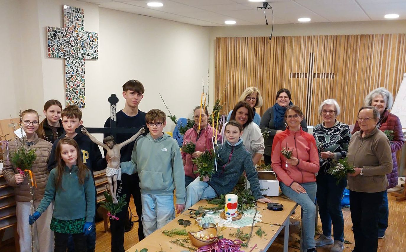 Mit etwas Geschick, viel Konzentration und einer guten Portion Teamarbeit entstanden aus Zweigen, bunten Bändern und Frühlingsgrün zahlreiche Palmbuschen. Die erfahrenen Mitglieder der Pfarrgemeinde gaben dabei ihr Wissen weiter und zeigten den Jüngeren, worauf es beim Binden ankommt – vom richtigen Aufbau bis zum stabilen Abschluss.