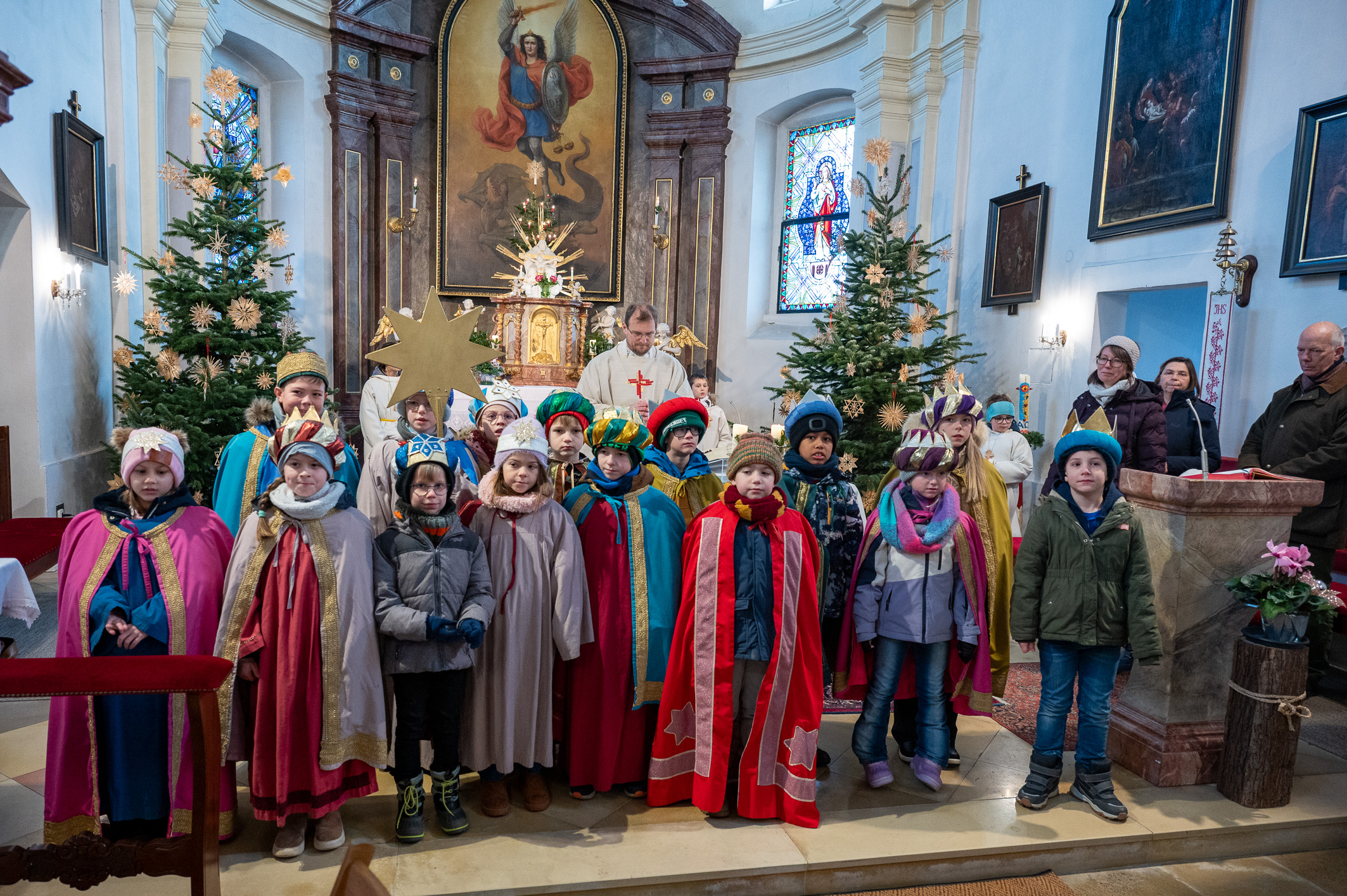 Die Sternsingermesse hat Kaplan Georg Sallaberger mit den Sternsingern und der Pfarrgemeinde am Dreikönigstag in der Kirche gefeiert, musikalisch begleitet von Isolde Haselsteiner. Den Abschluss bildet ein gut besuchtes Pfarrkaffee. Für die Kinder gab es als Danke einen Film im Pfarrsaal.